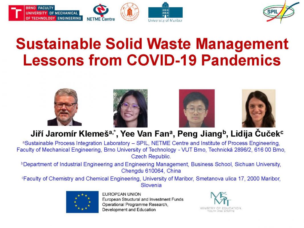 The COVID-19 pandemic has been severely influencing many issues in the majority of the world population. So far, the world has suffered seven waves of death and five peaks of infections. The statistics are different in credibility in various countries, but we have no reasons not to believe more than 1 M victims in the US or 145,000 in France. Comparing the COVID-19 outbreak and the 1918 flu pandemic, the pandemic might still get more deadly than the most severe previous pandemic. Many measures such as quarantine, social distancing and lockdown have been set to mitigate the coronavirus infection, followed by vaccination and medication. The pandemic profoundly influenced many industries, including agriculture, manufacturing, finance, education, healthcare, sports, tourism, food and waste management. Although overall energy demand temporarily declined, the repercussions are complicated in different fields and consumption patterns of different regions. The industry is on the way to understanding the complicated impacts and identifying emerging opportunities. The way ahead demands a continuous analysis of all novel waste management emerging opportunities under careful balancing of savings and increasing demands. Not all novel smart and high-tech options are energy efficient, and each should specifically balance in case-specific conditions. The economic disruptions have been facilitating faster changes and stronger creativity. Innovations meet both cultural and material requirements for acceleration. Old and traditional structures preventing the income of novel technologies are weakening. The old economy has been collapsing, and the novel "clusters" of innovation are becoming the core of a novel emerging economy. This had been happening for the past three centuries. It has been witnessed five substantial's "waves" regularly causing economic destructions and related re-clustering. The first wave was driven by employing the power of water, and the steam power was the second wave. Coal and electricity brought the third wave, the fourth exploiting oil and gas, and the fifth wave was triggered by digital transformation. It is the opportunity that the humans are present at the start of the sixth immense wave of innovation, driven by renewable energy combined with e-mobility, e-activities and e-services, smart-city technology based on the IoT, 5G, and even emerging 6G. It can be seen that the innovation waves are, in most cases, coincided with crises or critical situations, where the society has been mobilising all possible research strengths. Sustainable Solid Waste Management has not been an exception under the pandemic situation. The pandemic busted with the novel requirements and demands – infection solid waste, exploding amount and kinds of plastic waste (PPE, packaging). It indirectly serves as a driver in reshaping the waste management system, including a system supported by IoT. Smart waste management (intelligent bins, autonomous collection, data-driven behavioural analysis, smart waste segregation based on machine learning etc.) could enhance the rigidness in overcoming a similar crisis or disease outbreak. Mobile, decentralised, smart and adaptable (different feedstock) treatment approaches are worth more research attention. Another issue that requires revisiting is the status of plastic with several advantages compared to other materials in combating the diseases and spreading. The strategies and efforts that focus on enhancing the plastic value chain (from production to end-of-life waste management) to minimise the environmental footprints are discussed in this presentation instead of emphasising replacement or a plastic ban. The sustainability of upcycling and downcycling approaches in forming a Circular Economy is also discussed. The authors closely followed this development through a series of published papers, many of which became highly cited. They also benefit from being located and originated from the authors familiar with different parts of the world. However, the pandemic has been still developing as well as its impact on the Waste Management, Energy and Environmental footprints. And this presentation, based on the published papers, has been adding the recent developments and also tempting to provide some conclusions and suggestions on how to deal with possible future disruptions and pandemics, exploiting the experience gained and especial the smart and e-development facilitated by the critical situation.